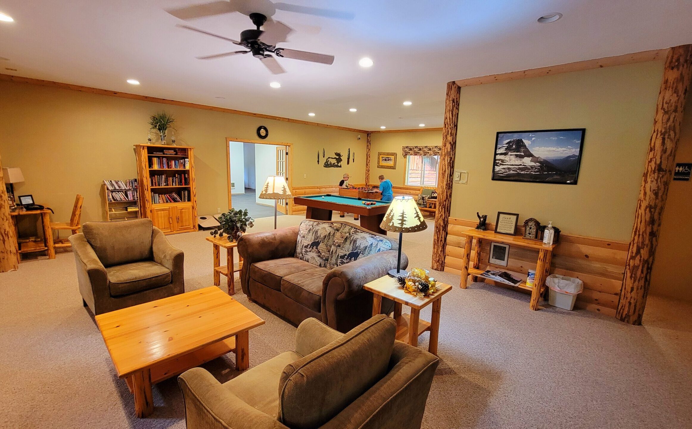 Awaken to mountain views or take a leisurely stroll to our waterfall (there are actually two on the property). After a day exploring Glacier National Park, enjoy a refreshing dip in our indoor heated pool or relax at your cabin in your own private hot tub. Winter guests will especially enjoy the hot tub after a day on the Resort’s groomed X-C ski trails. Gather for an evening in the Lodge playing a game of pool or sit by the fireplace reading a book from the Resort’s library. A fitness center is located in the Lodge as well.