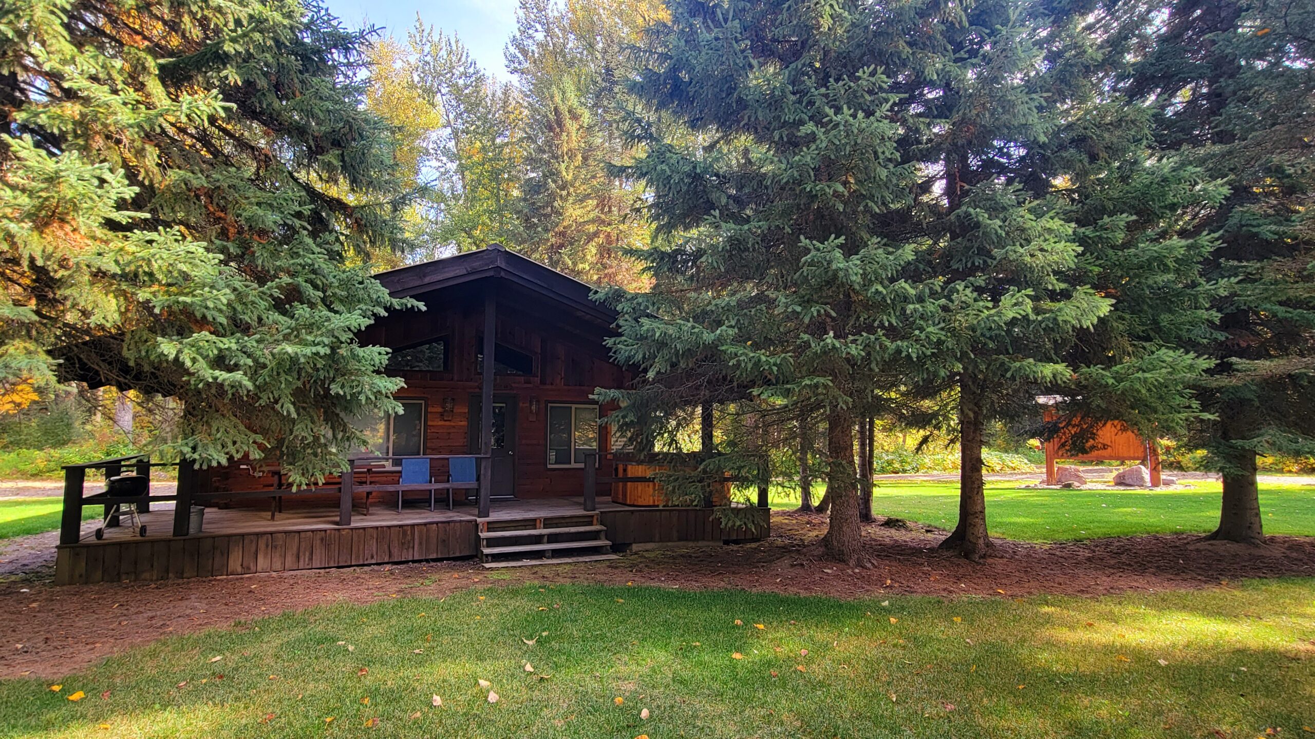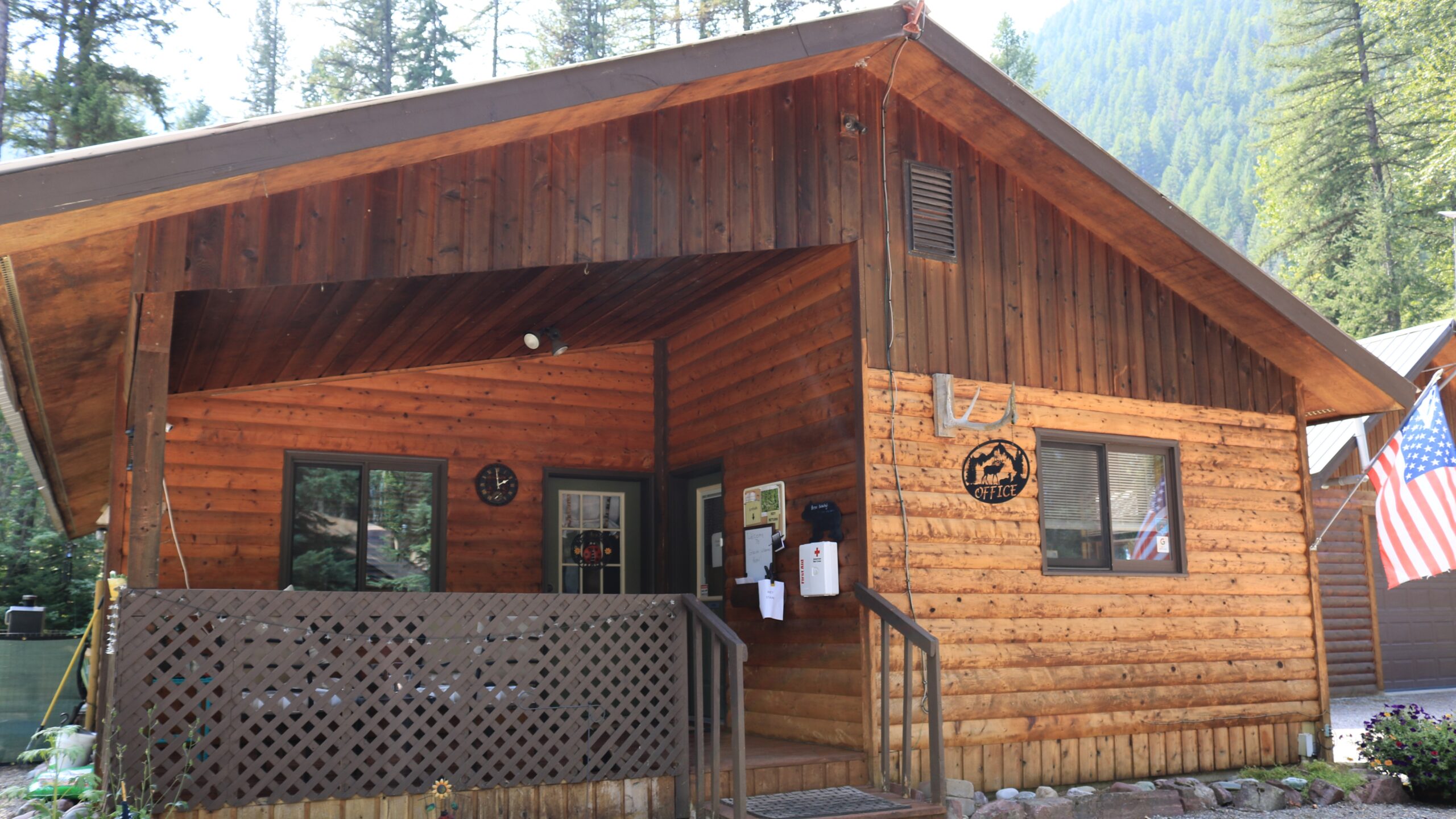 We are located ten miles east of the West entrance to Glacier National Park at mile marker 163.1 on Highway 2 E, nestled in the forest on the edge of the Great Bear Wilderness. And we are open year round!